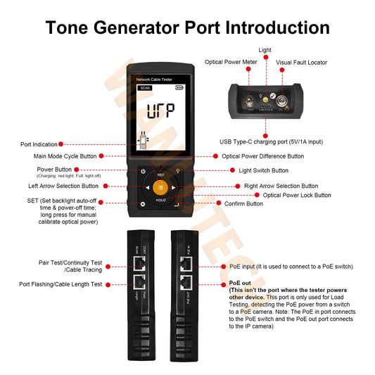 WANLUTECH Network Cable Tester, Digital Tone Generator with Probe Support Digital Multimeter Optical Power Meter Visual Fault Locator Network Test PoE Test Cable Continuity Testing (LT-600M)