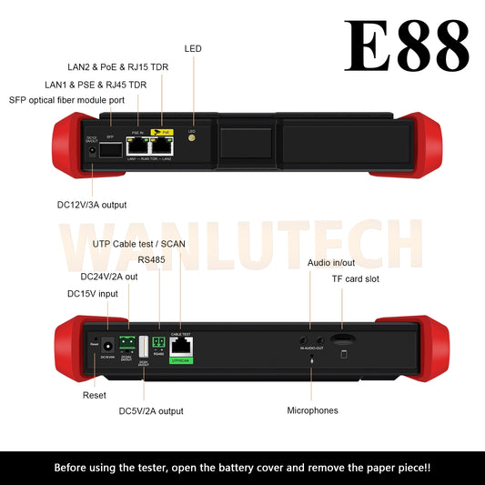 WANLUTECH 4K 12MP IP Camera Tester, IPC Tester 90W PoE Power Output 8'' Touchscreen CCTV Tester SFP Optical Fiber Module Port RJ45 Cable TDR Test WiFi Network Tools (E88)