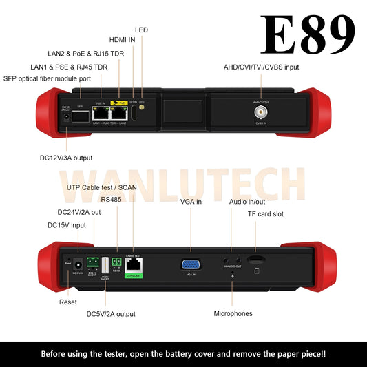 WANLUTECH 4K 12MP IP Camera Tester, CCTV Tester 90W PoE Power Output 8'' Touchscreen 8MP TVI CVI AHD CVBS Camera Tester SFP Test RJ45 Cable TDR Test WiFi Network Tools HDMI VGA (E89)