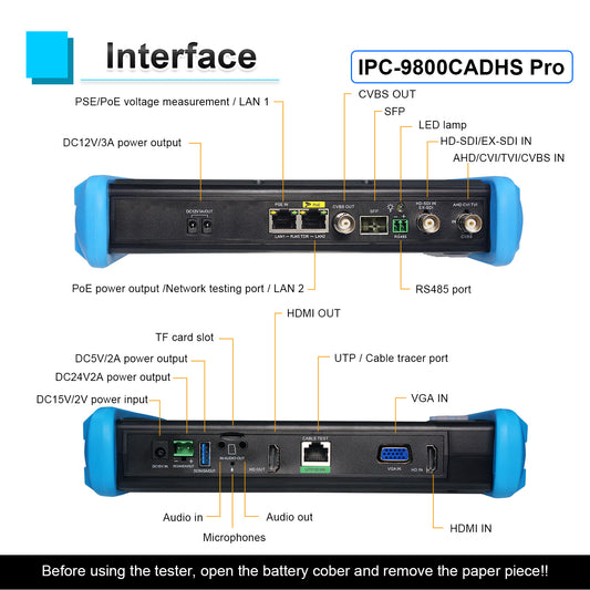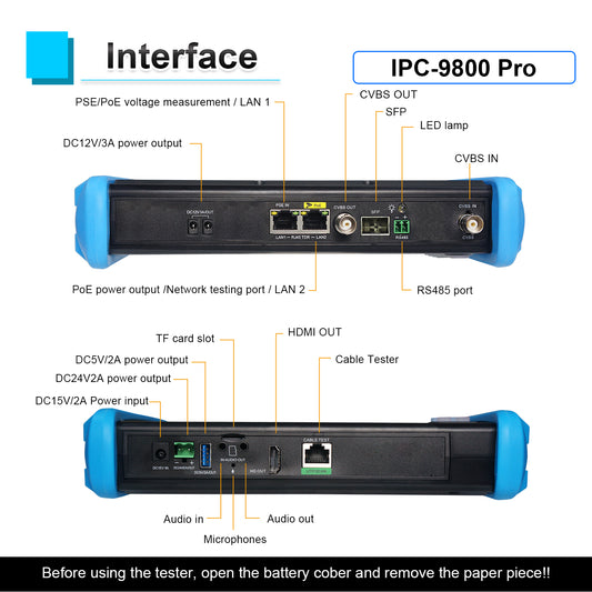 WANLUTECH CCTV Tester, 8K 32MP IP Camera Tester Support CVBS Camera Test HDMI Out Rj45 TDR Cable Test SFP PoE WiFi (IPC-9800 Pro)