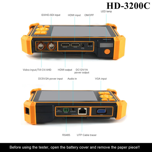 WANLUTECH CCTV Camera Tester, 8MP TVI CVI AHD SDI CVBS Analog Camera Tester 5 inch TFT-LCD Screen Support Cable Tracer UTP Cable Tester PTZ Control HDMI in VGA in RS485 (HD-3200C)
