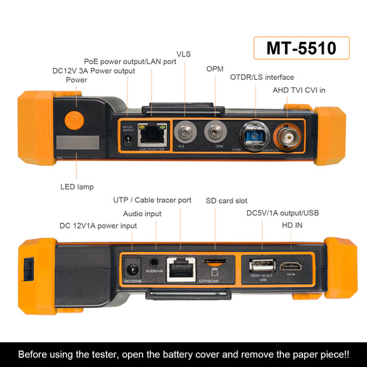 WANLUTECH Single Mode OTDR Fiber Optic Tester, MT-5510 1310/1550nm 28/26dB 5.4'' Touchscreen OTDR Event Map OPM OLS VFL CCTV Test Support 8MP TVI CVI AHD 4K IP Camera Test Cable Tracer RJ45 Cable TDR Test Network Tools PoE WiFi SC FC ST LC