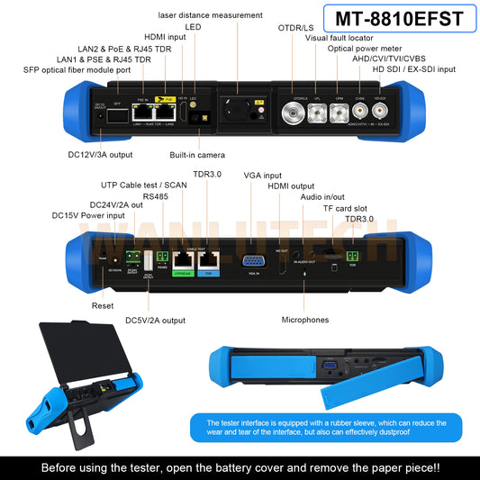 WANLUTECH Single Mode OTDR Fiber Test, OTDR CCTV Tester MT-8810EFST 1610nm 28dB OPM LS VFL OLT Event Map SDI AHD CVI TVI CVBS 8K IP Camera Tester SFP Digital Multimeter Cable Tracer RJ45 Cable TDR Test Network Tools HDMI VGA