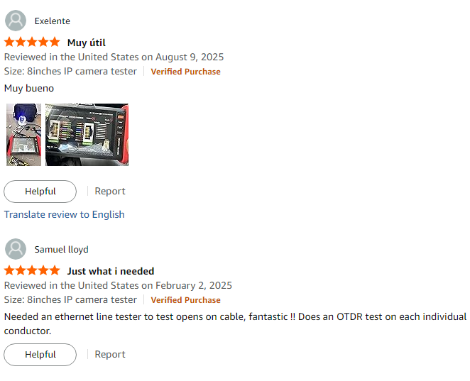 [ Cable Tester ] RJ45 Cable TDR Test: it can test cable pair status, length (up to 180 meters), attenuation(only network cables exceeding 10 meters can be used for testing), reflectivity, impedance, skew. UTP Cable Tester: test UTP cable connection status and display on the screen, support detect the near-end, mid-end and far-end fault point of the RJ45 cable plug. Cable Length Test: Measure the breakpoint position of (open circuit status) BNC cables, RJ45 network cables, RJ11 cables, test length max 3000 meters