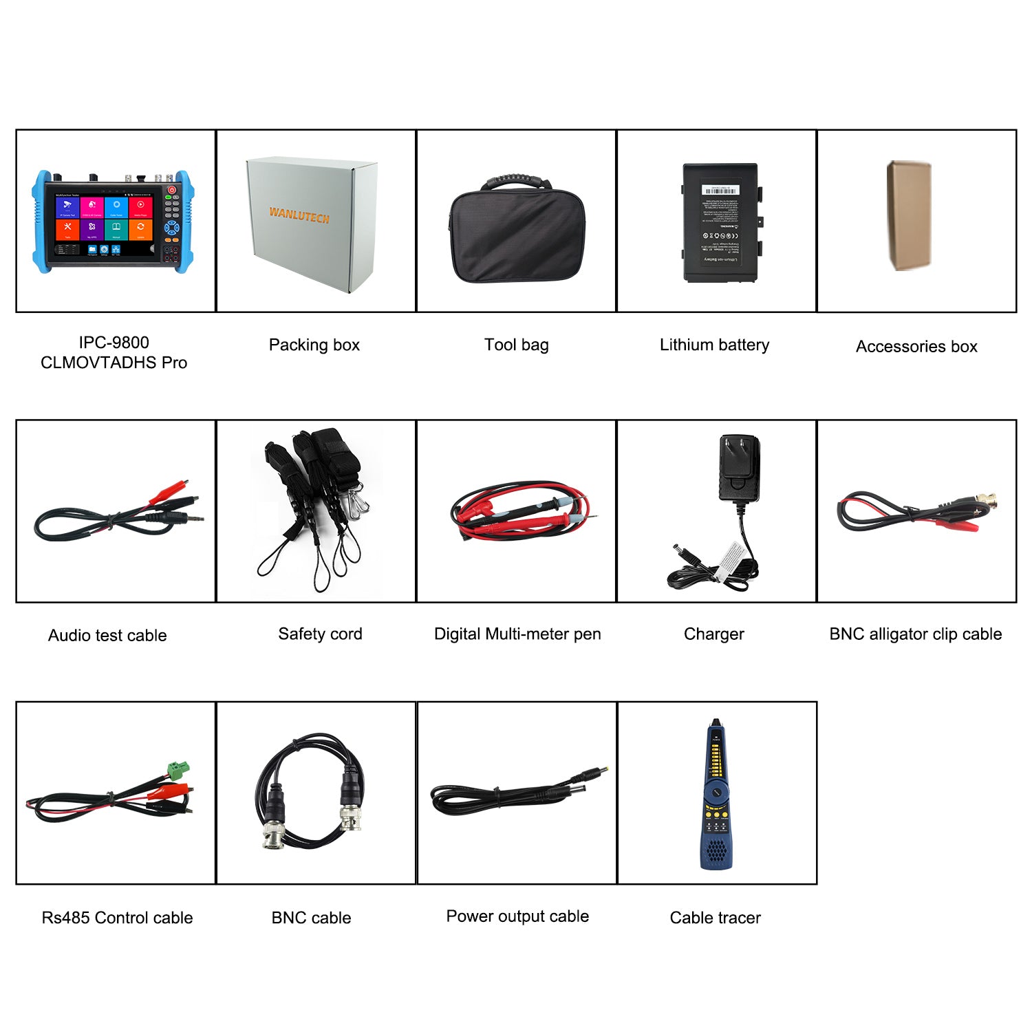 WANLUTECH Upgraded 8K IP Camera Tester, All in One CCTV Tester TVI CVI AHD SDI CVBS Camera Tester DMM OPM VFL TDR Cable Tester SFP Network Tools WiFi PoE HDMI VGA (IPC-9800CLMOVTADHS Pro)