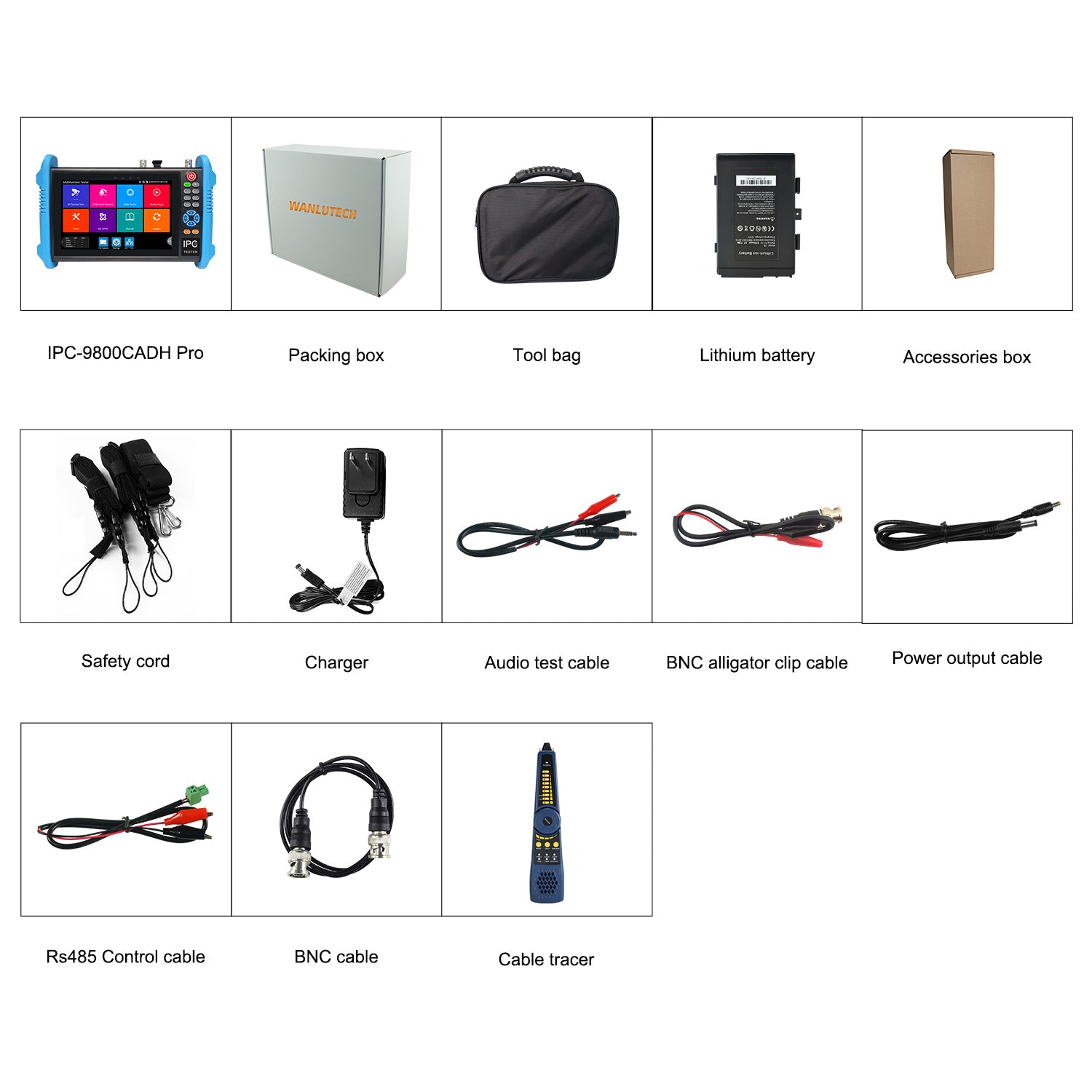 [ Upgraded IP Analog Camera Tester ] WANLUTECH 8K IP camera tester has 7'' touchscreen, 1280x800 resolution. It support to test max 8K 32MP 4K 12MP IP cameras, support CVBS analog camera test. The IP camera tester supports batch activation of DH, Hik cameras and modification of IP addresses, passwords, etc. Support IPC Test /IP Discovery/Rapid Video/RTSP Play /Quick OVIF/Hik DH test tool/Client APK. Support 1 channel BNC input & 1 channel BNC looped output, NTSC/PAL (Auto adapt). Support CVBS loop test, the tester send and receive color bar generator signal, check BNC cable